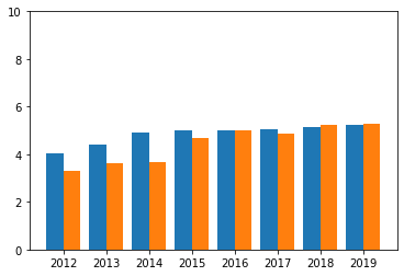 Provando ad unire di due istogrammi, il grafico risultante è il seguente: