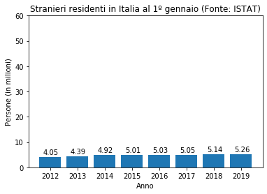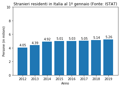 Se io fossi un politico che ha governato fino al 2012 e volessi convincervi che dal 2012 al 2019 il numero di stranieri è aumentato vertiginosamente vi farei vedere il seguente grafico: